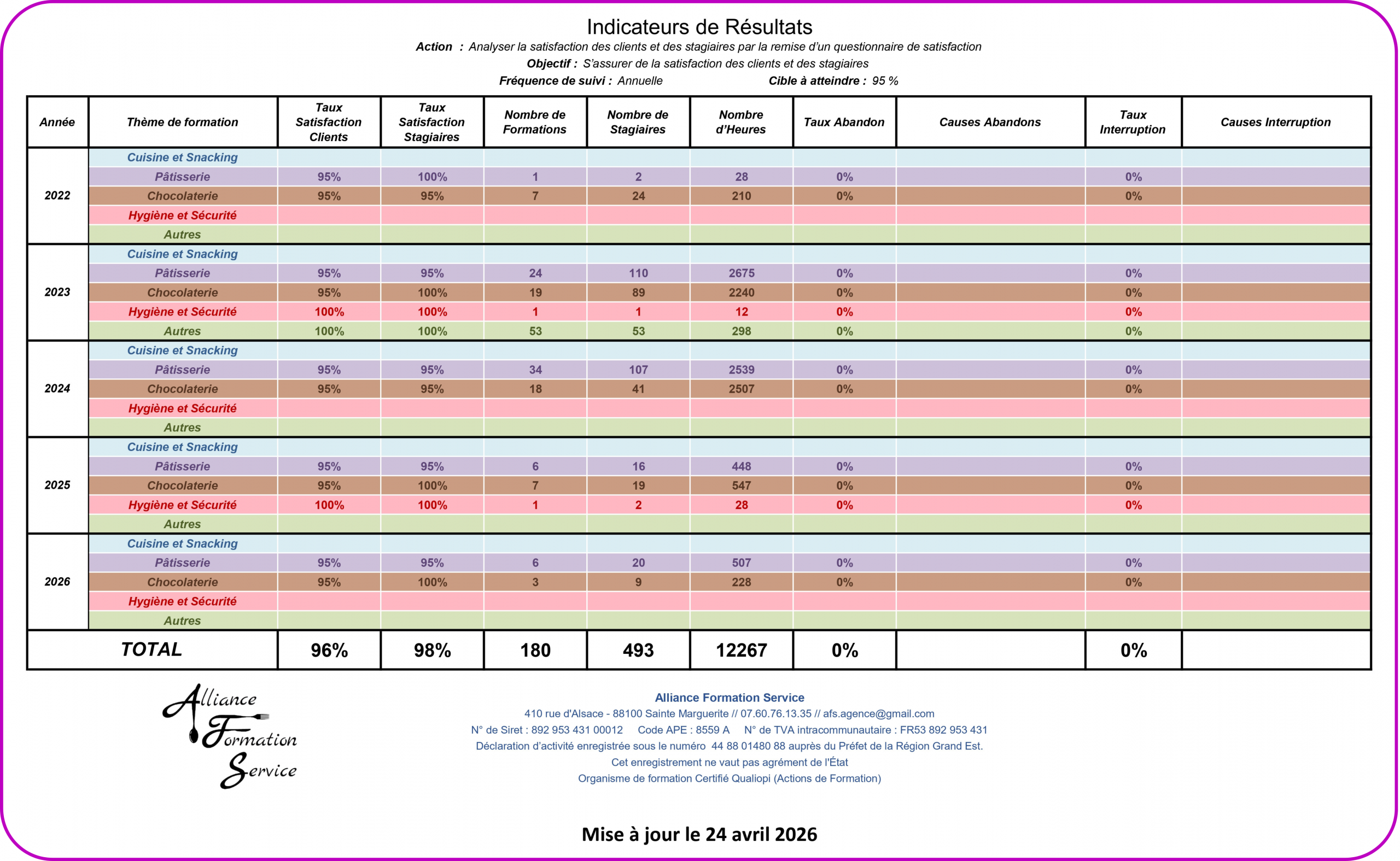 Mise à jour de notre site internet : 24 avril 2026